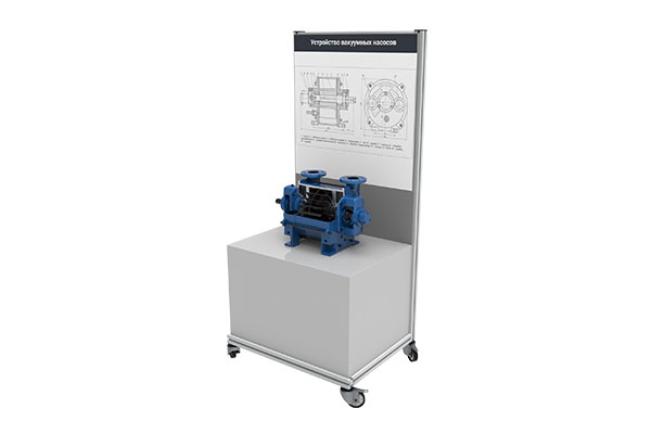 Представляет собой планшет, с закрепленным на нем насосом в разрезе и текстовой информацией о конструктивных элементах. Планшет может быть размещен на столе или стене, с использованием специальных креплений, входящих в комплект поставки. В комплект входит методическое пособие с подробным описанием устройства, принципа работы и сфер применения представленного насосного агрегата.